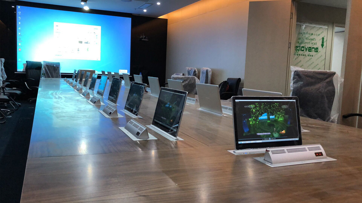 華韻無紙化會(huì)議系統(tǒng)基于移動(dòng)互聯(lián)網(wǎng)的無紙化會(huì)議交互系統(tǒng)、現(xiàn)代通訊技術(shù)、音頻技術(shù)、視頻技術(shù)、軟件技術(shù),通過文件的電子交換實(shí)現(xiàn)當(dāng)今會(huì)議的無紙化。其特征是:文件傳輸網(wǎng)絡(luò)化,文件顯示電子化,文件編輯智能化,文件輸入輸出可控化。核心功能主要是實(shí)現(xiàn)會(huì)議簽到、文件分發(fā)、文件上傳、文件同步演示、投票表決等功能。在局域網(wǎng)內(nèi)建立的會(huì)議交互場景應(yīng)用,實(shí)現(xiàn)文件分發(fā)、會(huì)議簽到、投票表決、呼叫服務(wù)功能。技術(shù)性主要利用會(huì)議傳輸要求的保密性,文件需要加密,轉(zhuǎn)換成為自定義的格式瀏覽,防止文件泄露。文件同步技術(shù)主要依靠觸屏軌跡跟蹤技術(shù)和觸屏軌跡仿真模擬技術(shù)實(shí)現(xiàn),達(dá)到流量控制的目的。